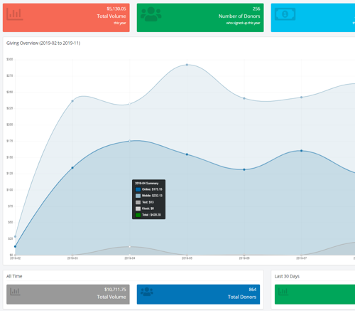 Visualize your giving in real time with the easyTithe dashboard showing data from all your giving sources.
